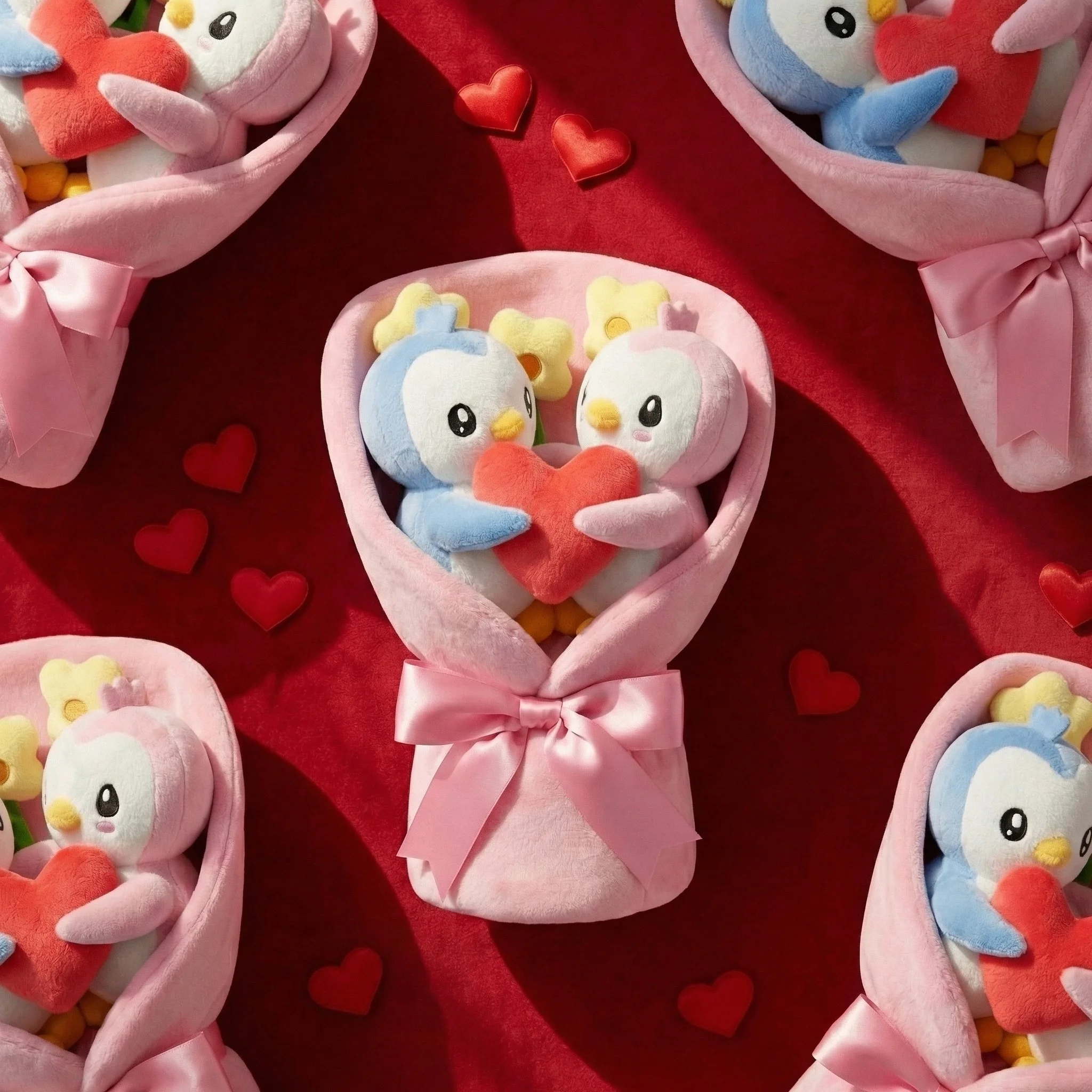 - If you follow them on social media (2M+! Followers!) and share their memes, The Pudgy Penguins Plushie Bouquet marks Pudgy’s first tangible expression of its Valentine’s Day moment: a cozy, soft, giftable bundle featuring the duo in a velvety soft bouquet, holding a heart together and surrounded by flower petals